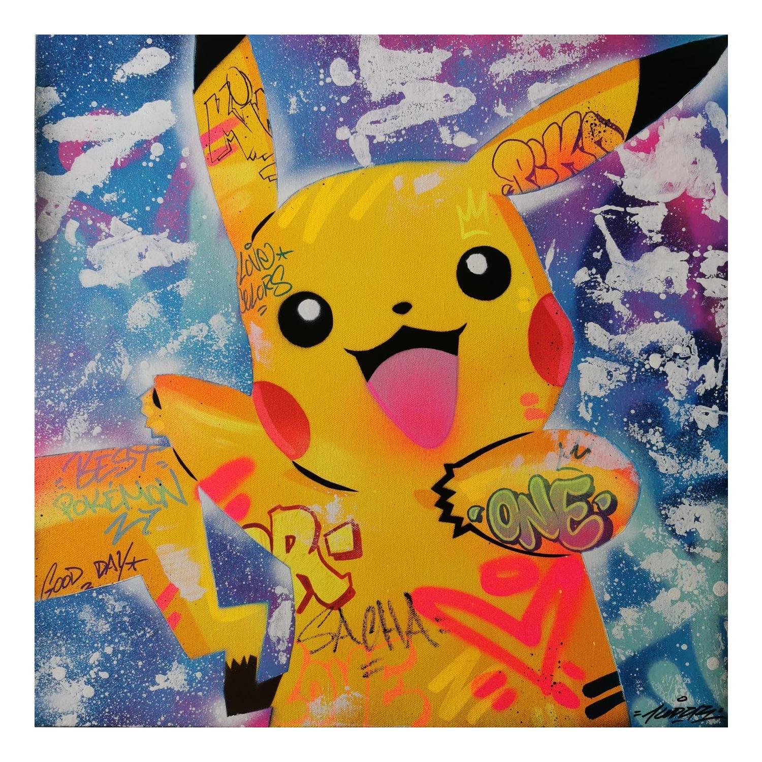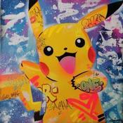 Hello PikachuPeinture Hello Pikachu par Lemoine Mael | Tableau Pop-art Icones Pop Graffiti Acrylique