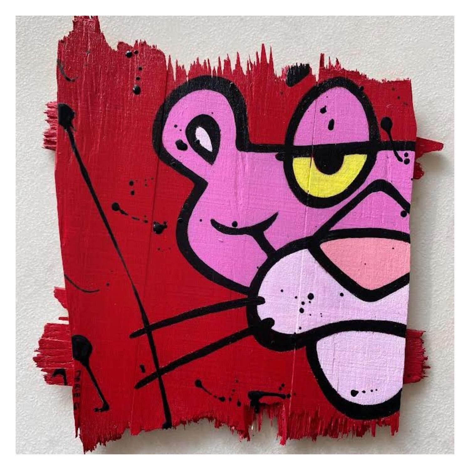 Peinture F2  Panthère rose par Marie G.  | Tableau Pop-art Icones Pop Bois Acrylique