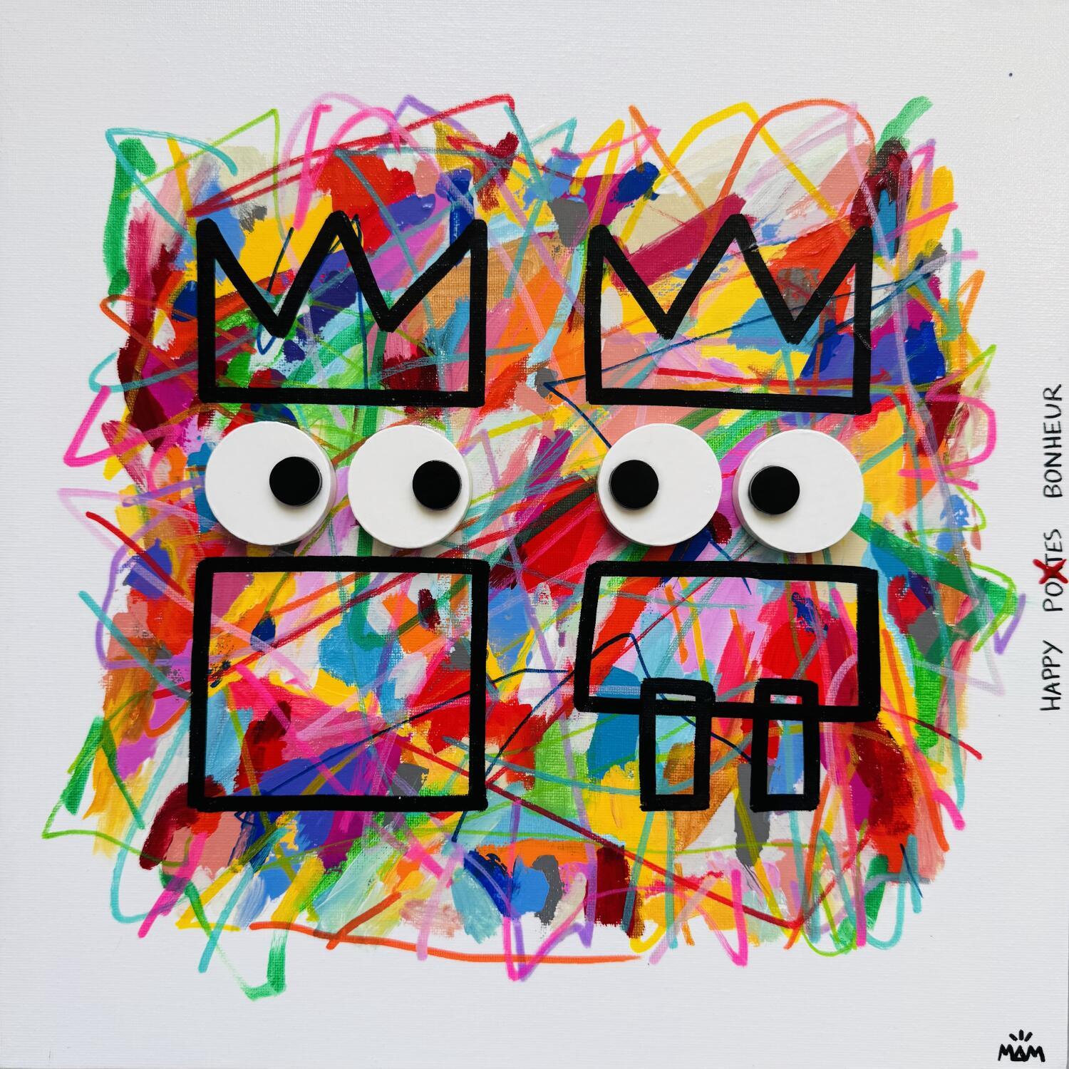 Cette oeuvre d'art contemporain unique et originale "HAPPY" a été réalisée par l'artiste contemporain Mam. L'artiste a utilisé la technique Acrylique pour créer cette peinture petit format sur Toile de style Pop-art.