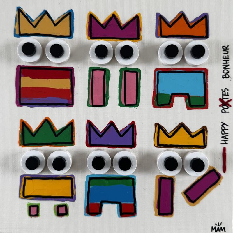 Peinture HAPPY TRIBU par Mam | Tableau Pop-art Icones Pop Acrylique Collage