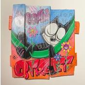 L'artiste a utilisé les techniques Acrylique, Posca pour créer cette peinture petit format sur Bois de style Pop-art sur le thème Icones Pop.