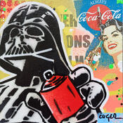 L'artiste a utilisé les techniques Acrylique, Carton, Collage pour créer cette peinture petit format sur Carton de style Pop-art sur le thème Icones Pop.