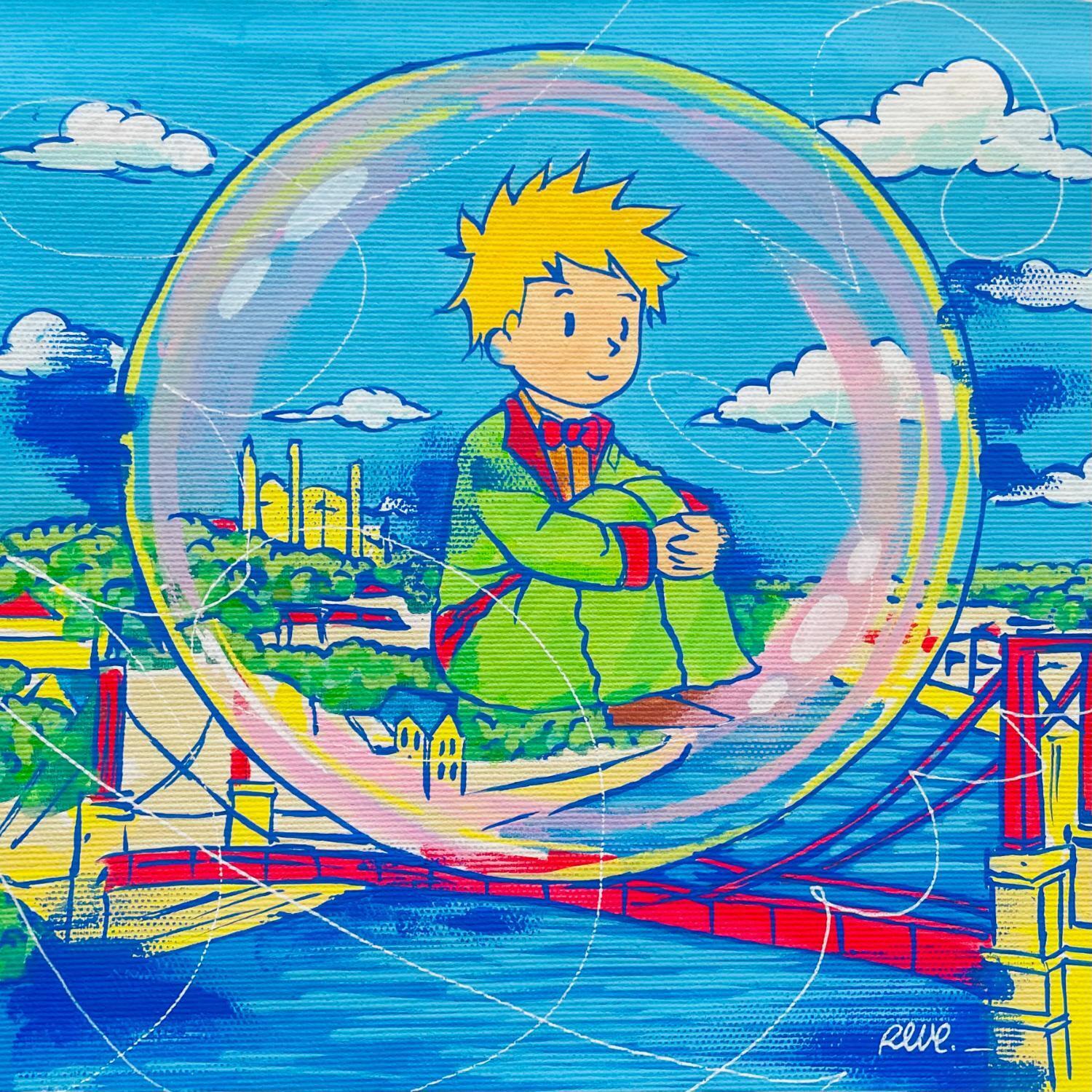 Peinture Dans ma bulle par Revel | Tableau Pop-art Icones Pop Acrylique