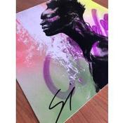 L'artiste a utilisé les techniques Acrylique, Graffiti pour créer cette peinture petit format sur Carton de style Pop-art sur les thèmes Icones Pop, Portraits.