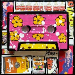 Cette oeuvre d'art contemporain unique et originale "POP K7 (rose)" a été réalisée par l'artiste contemporain Costa Sophie.