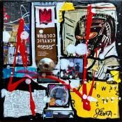 Cette oeuvre d'art contemporain unique et originale "Tribute to Basquiat (brown)" a été réalisée par l'artiste contemporain Costa Sophie.