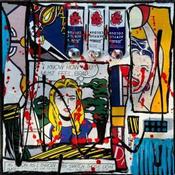 L'artiste a utilisé les techniques Acrylique, Collage, Upcycling pour créer cette peinture petit format sur Carton toilé de style Pop-art sur le thème Icones Pop.