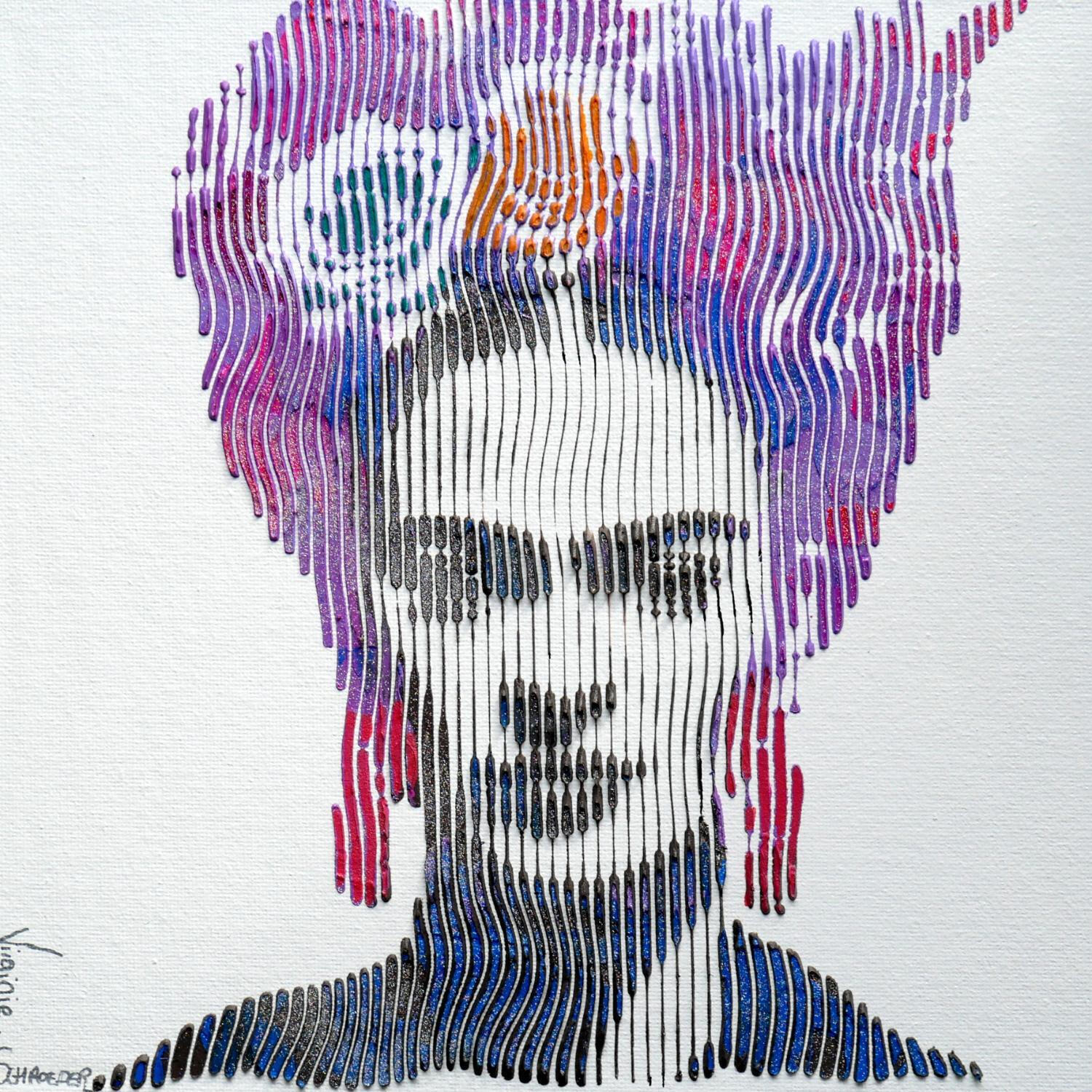 L'artiste a utilisé la technique Acrylique pour créer cette peinture petit format sur Carton toilé de style Pop-art sur le thème Icones Pop.
