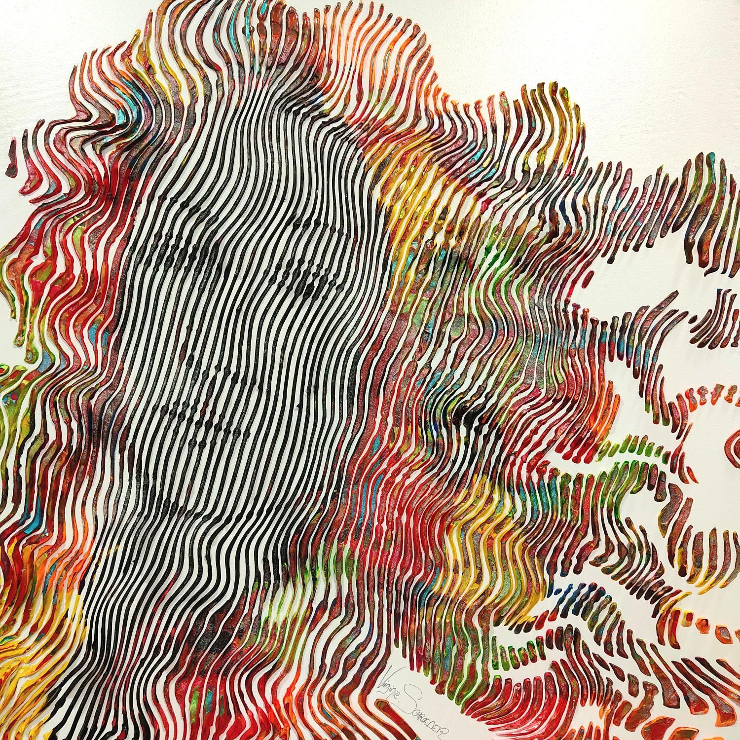 L'artiste a utilisé la technique Acrylique pour créer cette peinture grand format sur Toile de style Pop-art sur le thème Icones Pop.