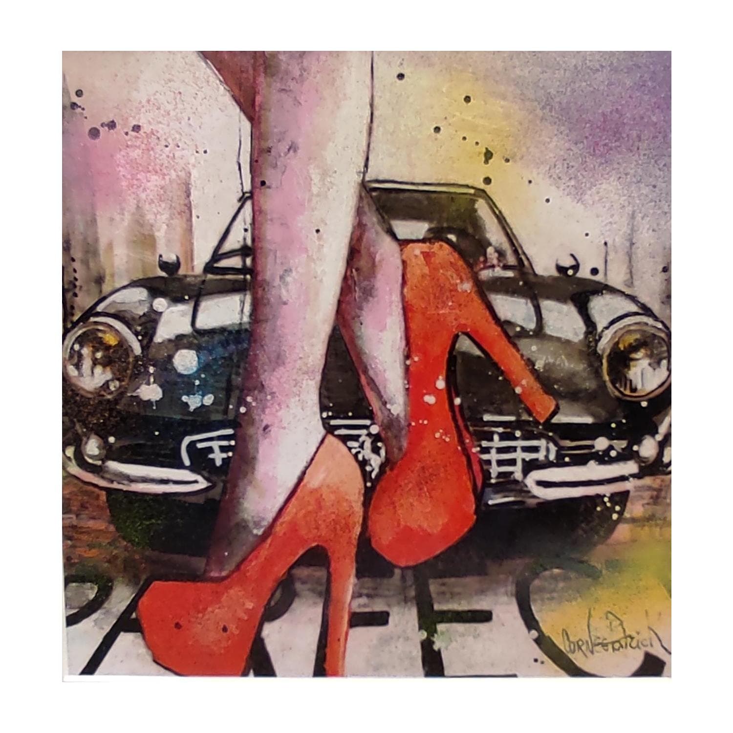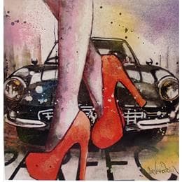 Cette oeuvre d'art contemporain unique et originale "Woman with an old Ferrari" a été réalisée par l'artiste contemporain Cornée Patrick.