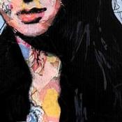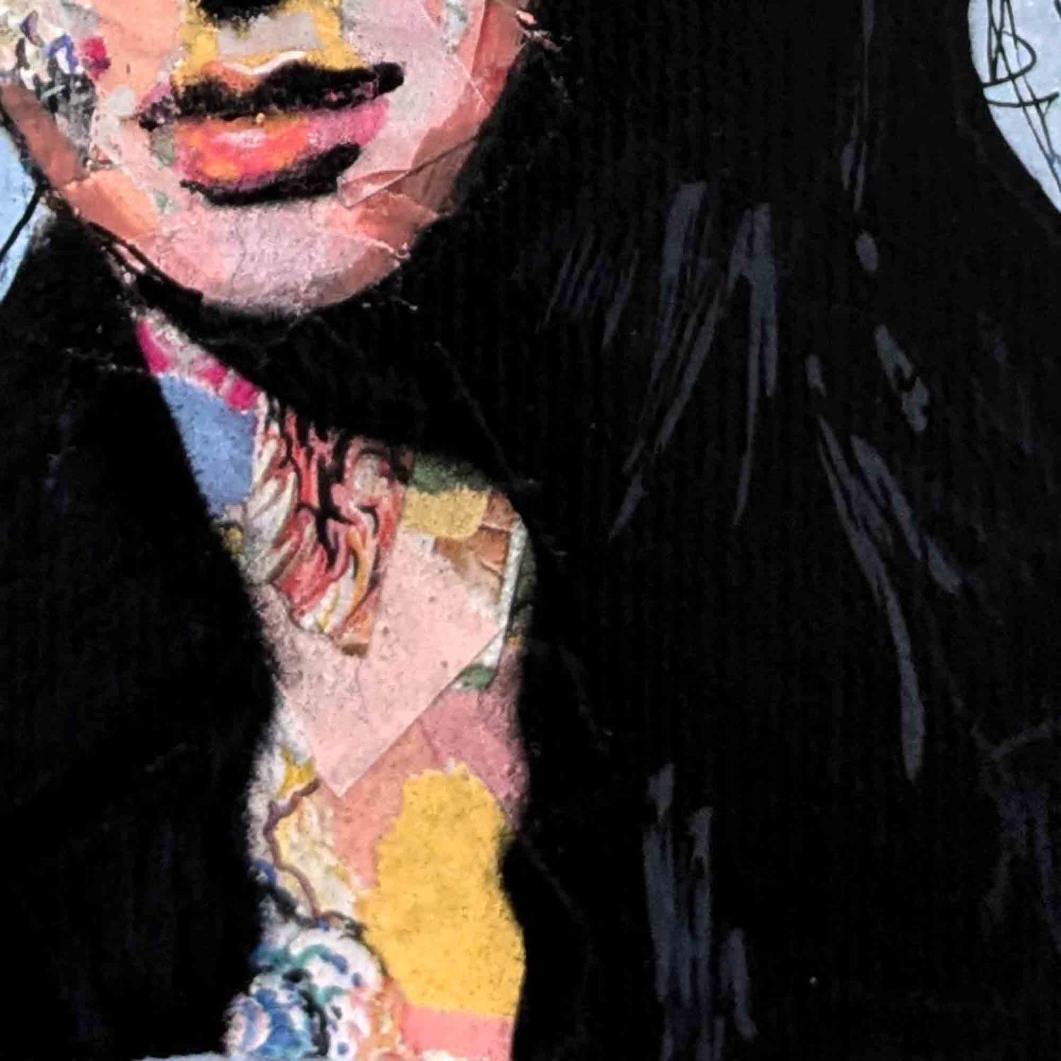 Pour sa réalisation l'artiste a utilisé du collage, de l'encre et de la peinture acrylique sur papier épais. Le format de ce portrait est 13x13cm.