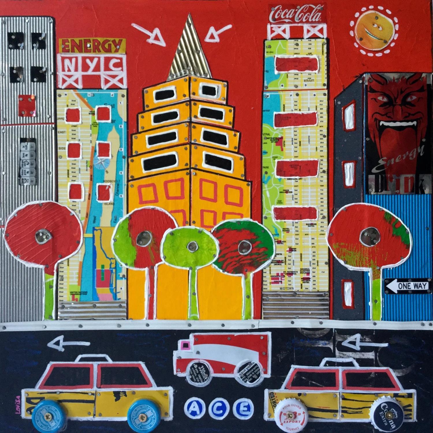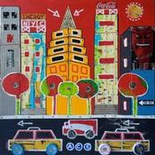L'artiste a utilisé la technique Bois pour créer cette peinture petit format sur Bois de style Pop-art sur le thème Urbain.