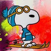 Cette oeuvre d'art contemporain unique et originale "SNOOPY SKIING" a été réalisée par l'artiste contemporain Mestres Sergi.