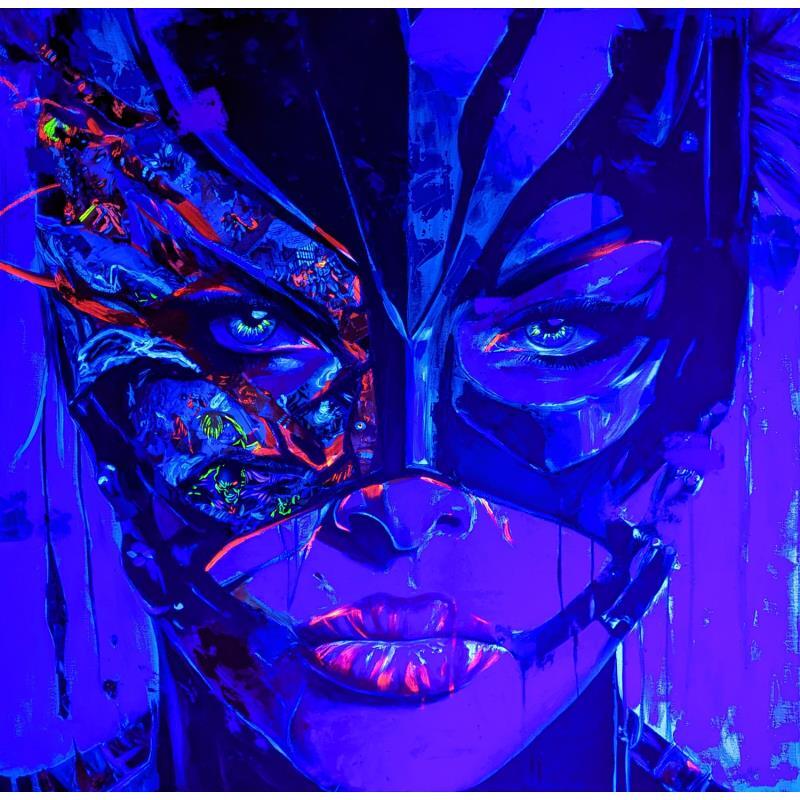 Bat GirlPeinture Bat Girl par Caizergues Noël  | Tableau Pop-art Portraits Icones Pop Acrylique Collage Papier
