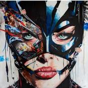 Peinture Bat Girl par Caizergues Noël  | Tableau Pop-art Portraits Icones Pop Acrylique Collage Papier
