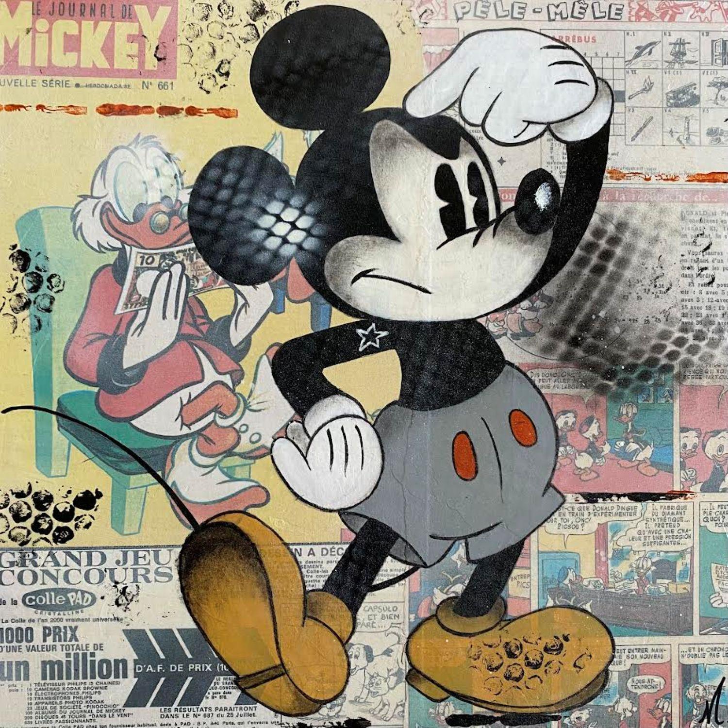 L'artiste a utilisé les techniques Collage, Bois, Acrylique pour créer cette peinture petit format sur Bois de style Pop-art sur le thème Icones Pop.