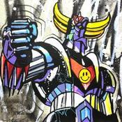 Cette oeuvre d'art contemporain unique et originale "Goldorak, street art" a été réalisée par l'artiste contemporain Cornée Patrick.