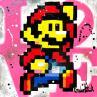 L'artiste a utilisé les techniques Graffiti, Huile pour créer cette peinture petit format sur papier de style Pop art, Mario pixel, pink love.