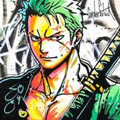 Cette oeuvre d'art contemporain unique et originale "Zoro et son Katana" a été réalisée par l'artiste contemporain Cornée Patrick.