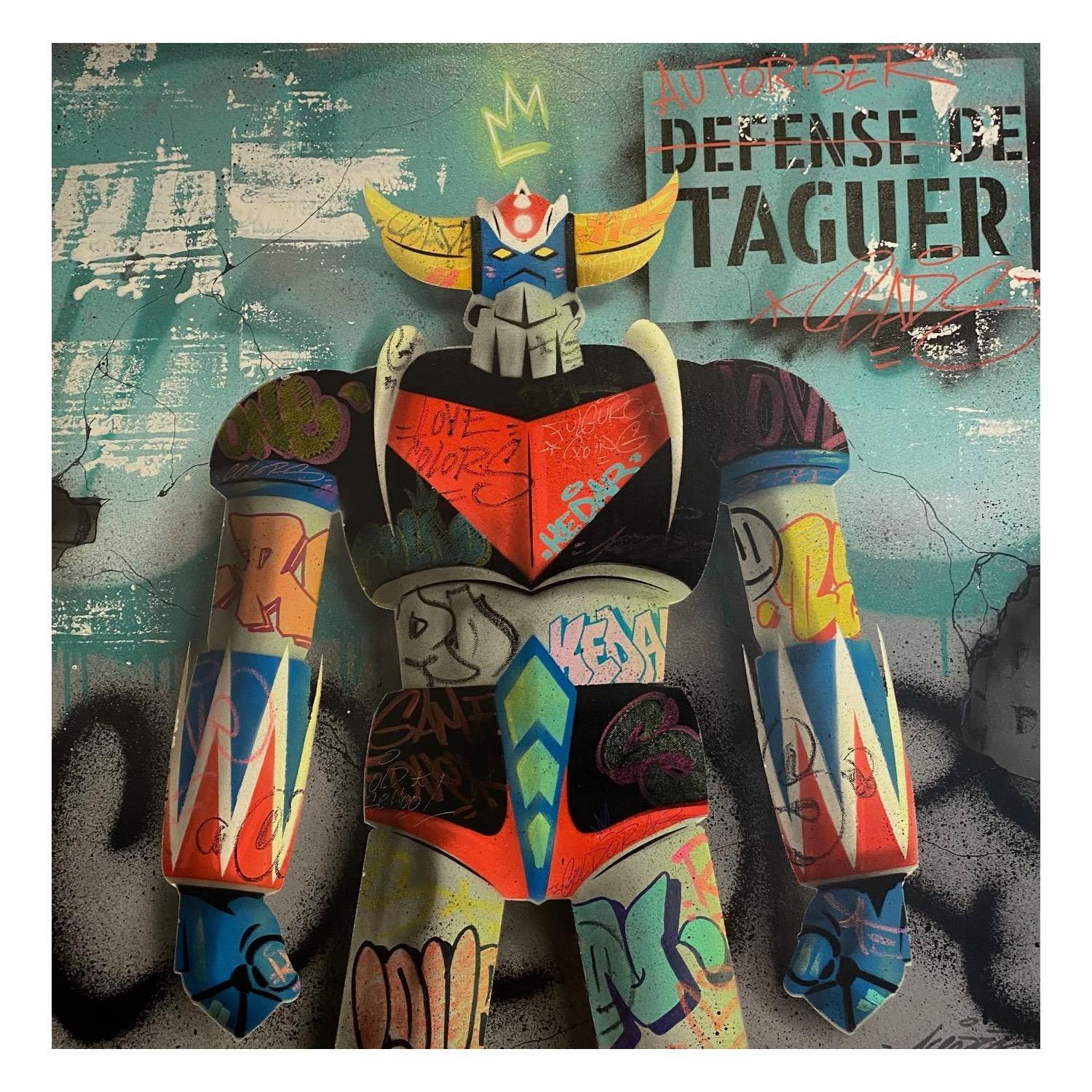 Cette oeuvre d'art contemporain unique et originale "Goldorak" a été réalisée par l'artiste contemporain Lemoine Mael.