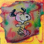 Cette oeuvre d'art contemporain unique et originale "Snoopy happy" a été réalisée par l'artiste contemporain Kikayou.