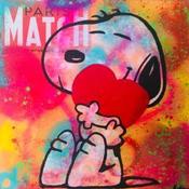 Cette oeuvre d'art contemporain unique et originale "Snoopy love" a été réalisée par l'artiste contemporain Kikayou.