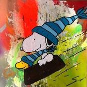 L'artiste a utilisé les techniques Graffiti, Carton pour créer cette peinture petit format sur Carton de style Pop-art sur le thème Icones Pop.