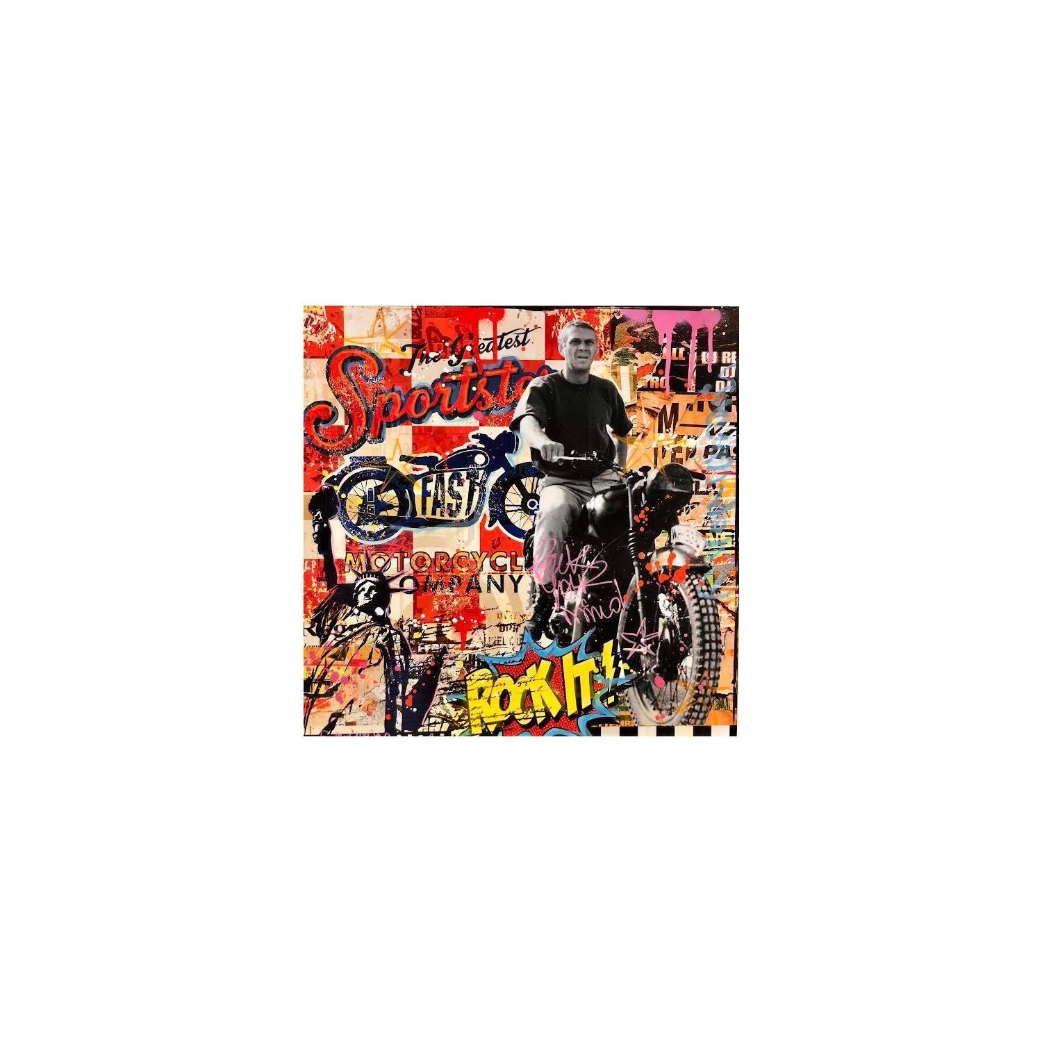 L'artiste a utilisé différentes techniques pour créer cette peinture grand format sur Toile de style Pop-art sur le thème Icones Pop.