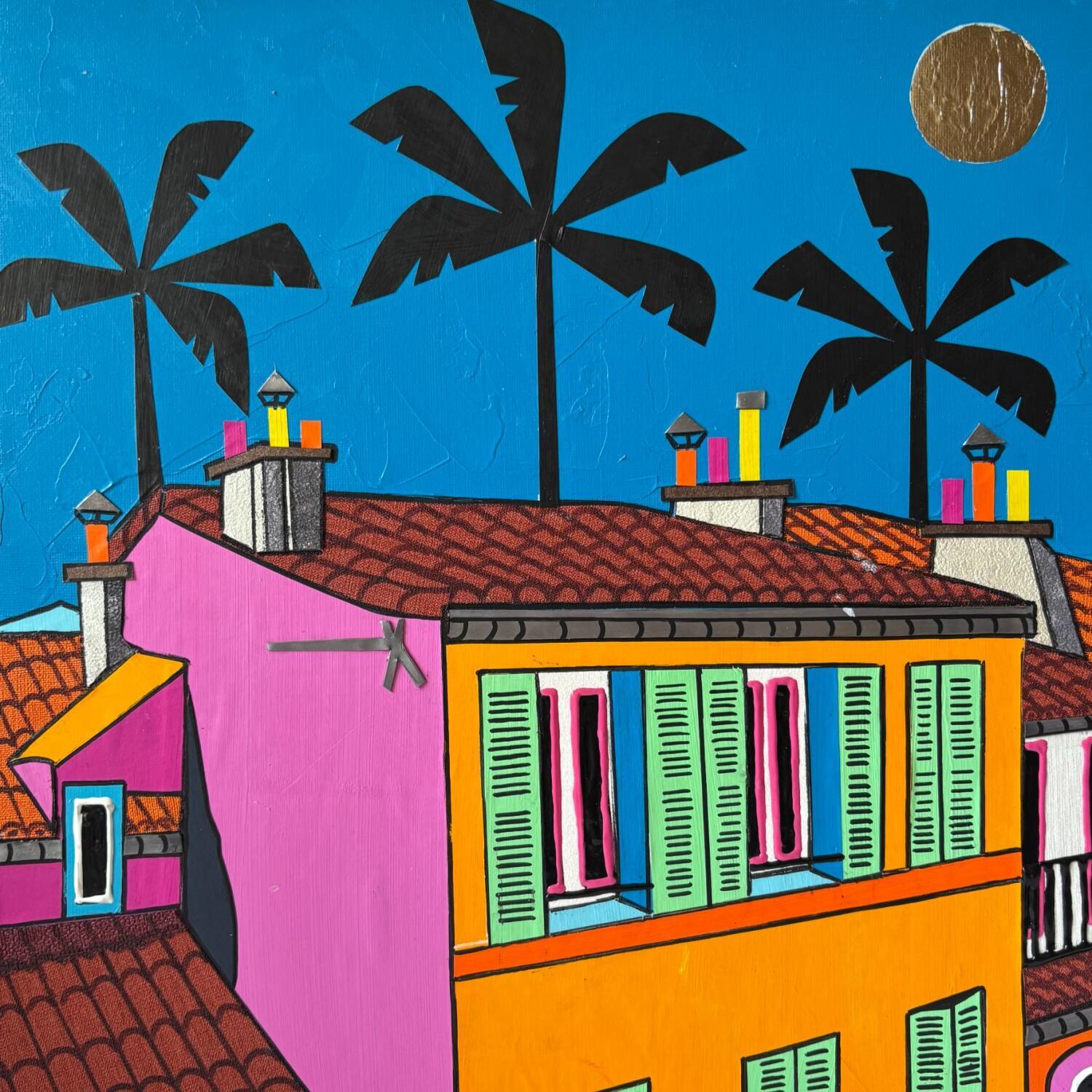 L'artiste a utilisé différentes techniques pour créer cette peinture petit format sur Carton toilé de style Pop-art.