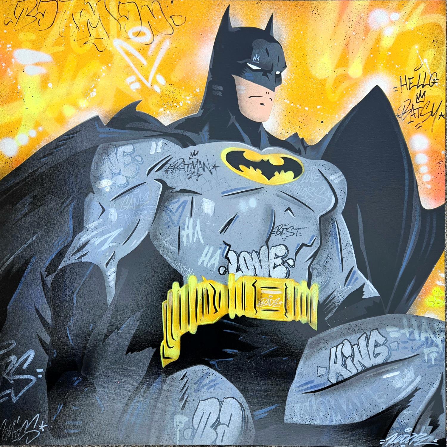 Peinture Batman king par Lemoine Mael | Tableau Pop-art Icones Pop Graffiti Posca