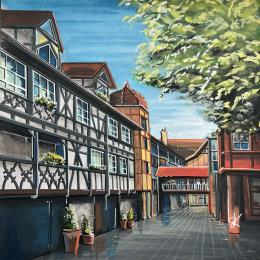 Cette oeuvre d'art contemporain unique et originale "Balade cour du Corbeau à Strasbourg" a été réalisée par l'artiste contemporain Touras Sophie-Kim .