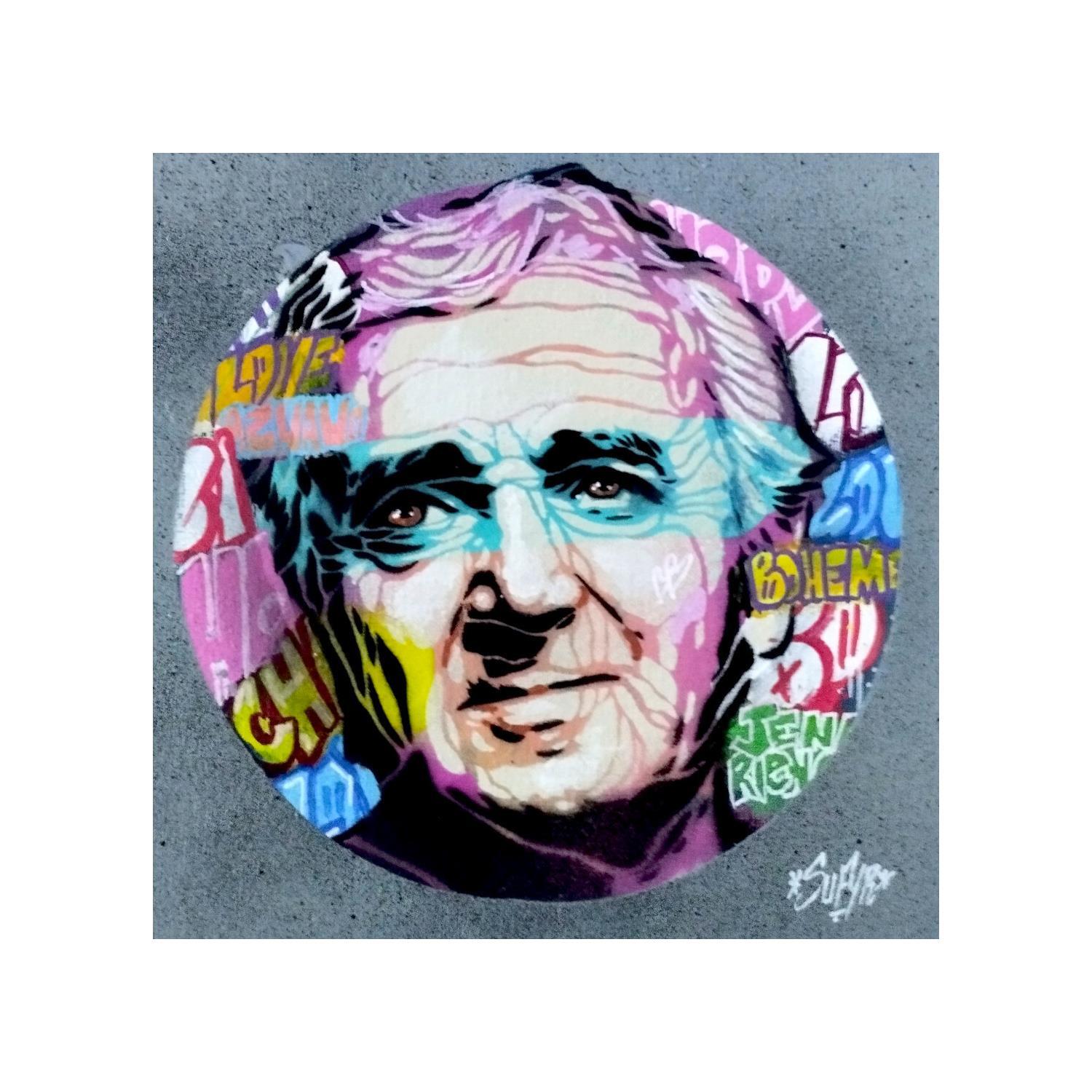 Cette oeuvre d'art contemporain unique et originale "Aznavour a été réalisée par l'artiste contemporain Sufyr.
