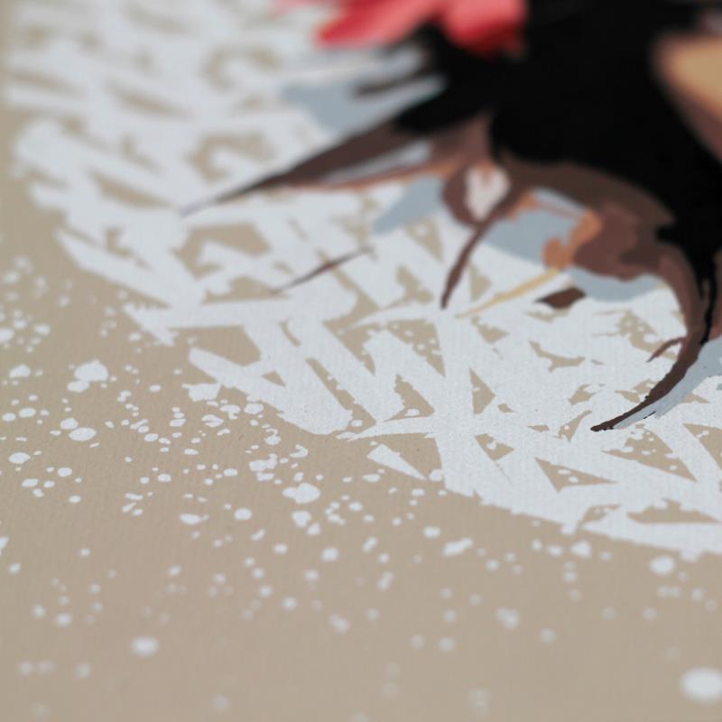 L'artiste a utilisé les techniques Acrylique, Graffiti pour créer cette peinture petit format sur Toile de style Street Art.