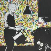 L'artiste a utilisé les techniques Acrylique, Graffiti pour créer cette peinture petit format sur toile de style Street Art sur le thème scènes de vie.