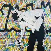 L'artiste a utilisé les techniques Acrylique, Graffiti pour créer cette peinture petit format sur toile de style Street Art sur le thème scènes de vie.
