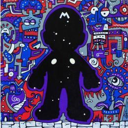 Cette oeuvre d'art contemporain unique et originale "The Pilot" a été réalisée par l'artiste contemporain Fanny. L'artiste a utilisé de la peinture acrylique et des marqueurs POSCA pour créer cette peinture petit format sur bois de style Street Art.