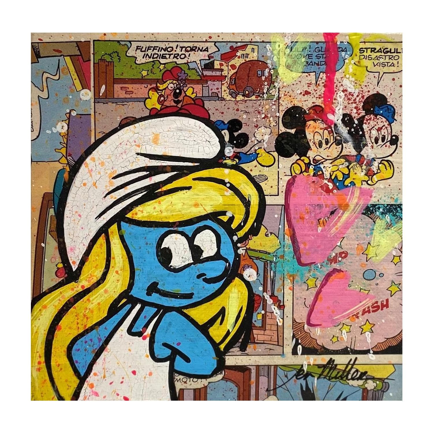 Cette oeuvre d'art contemporain unique et originale "Comic Smurfette" a été réalisée par l'artiste contemporain Miller Jen .