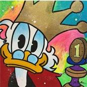 L'artiste a utilisé différentes techniques pour créer cette peinture petit format sur toile de style Street Art sur le thème icones Pop.
