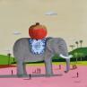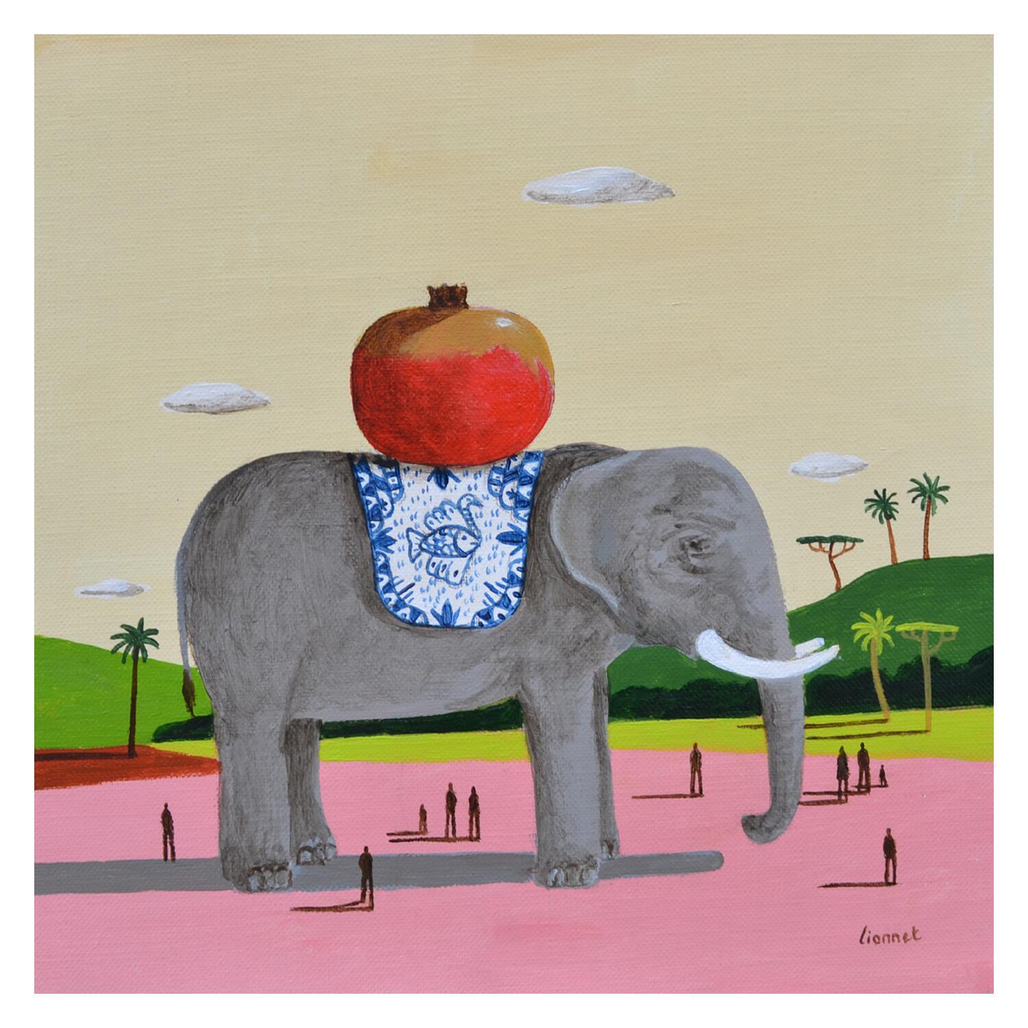Peinture Eléphant à la grenade par Lionnet Pascal | Tableau Surréalisme Paysages Scènes de vie Animaux Acrylique