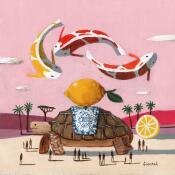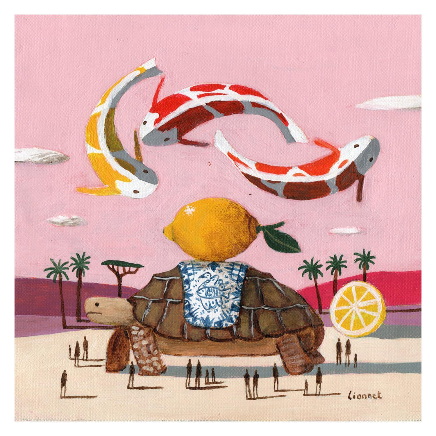Cette oeuvre d'art contemporain unique et originale "Tortue et carpes" a été réalisée par l'artiste contemporain Lionnet Pascal.