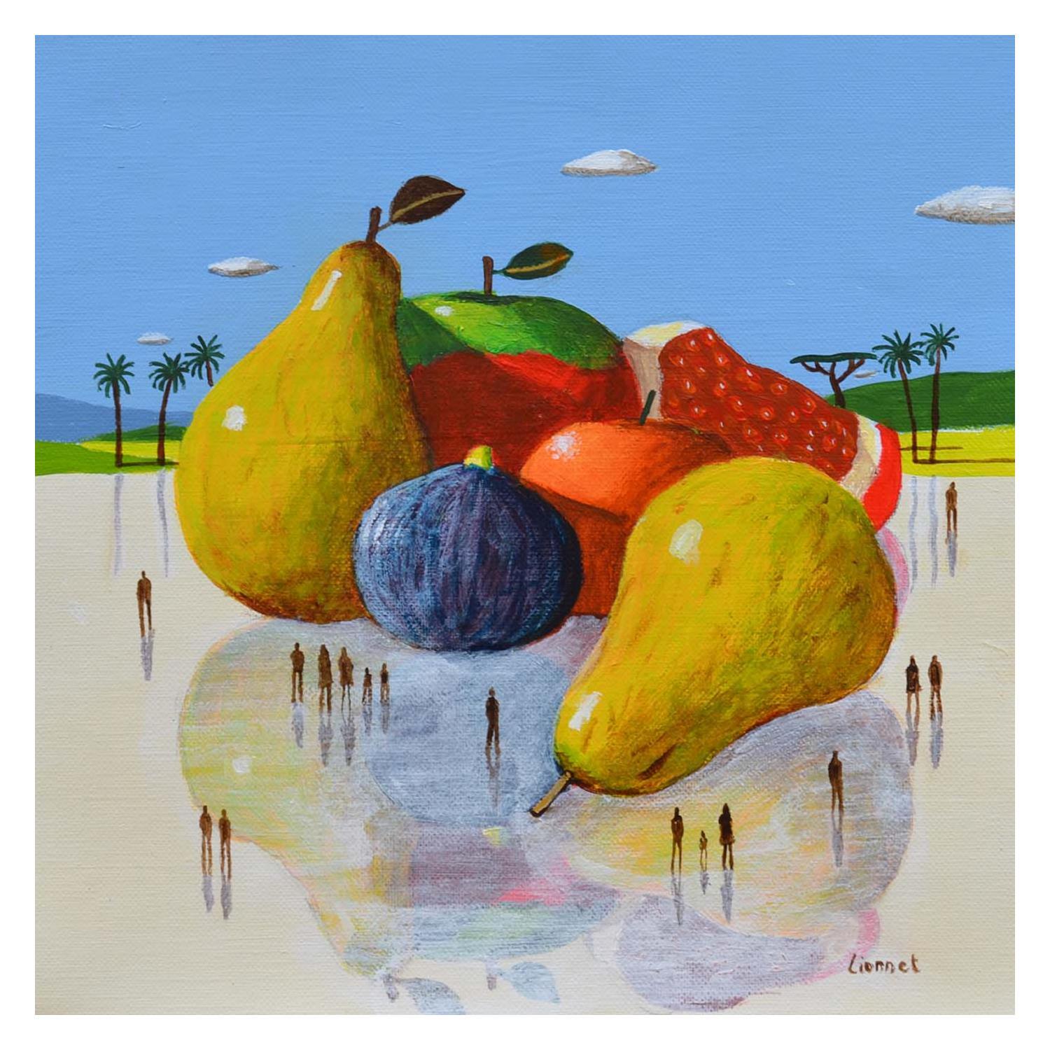 Cette oeuvre d'art contemporain unique et originale "Reflet de fruits" a été réalisée par l'artiste contemporain Lionnet Pascal.