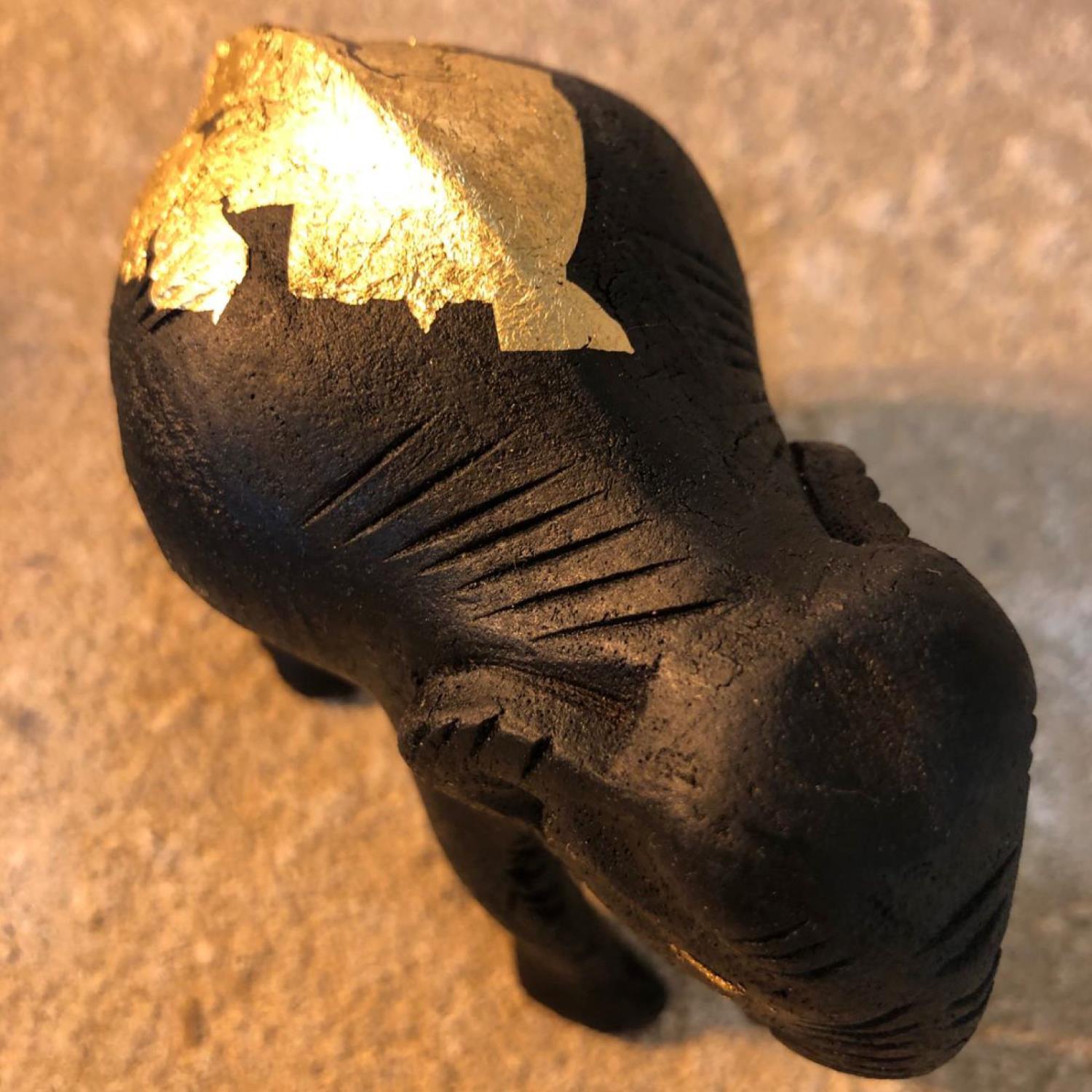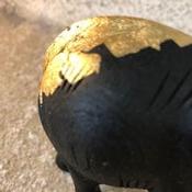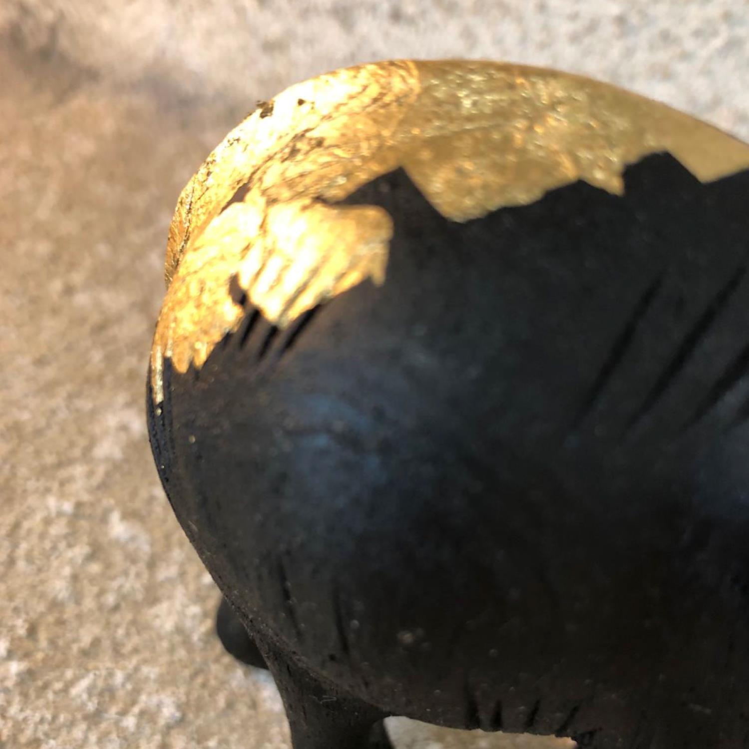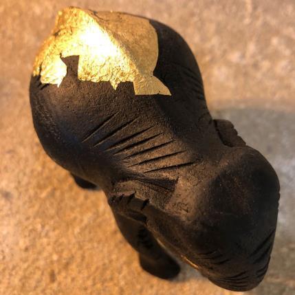 L'artiste a utilisé les techniques Bois, Feuille d'or pour créer cette sculpture petit format en Bois de style Figuratif sur le thème Animaux.