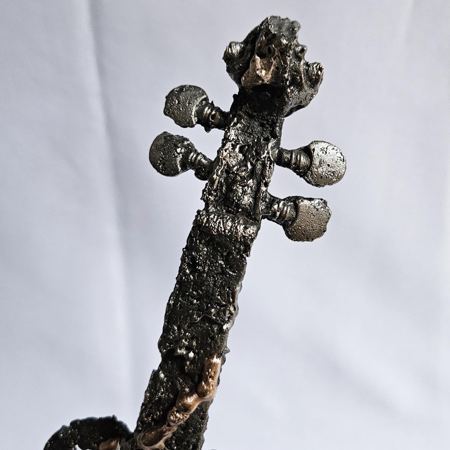 L'artiste a utilisé les techniques Bronze, Métal pour créer cette sculpture moyen format en Métal de style Figuratif sur les thèmes Minimaliste, Musique, Scènes de vie.