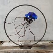 L'artiste associe le Métal sa matière de prédilection au verre soufflé pour créer cette sculpture grand format en Métal de style Figuratif sur le thème Animaux marins.