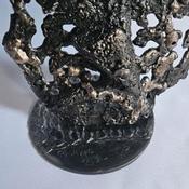 Cette sculpture représente un violon. elle est réalisée en dentelle de métal : acier et bronze
