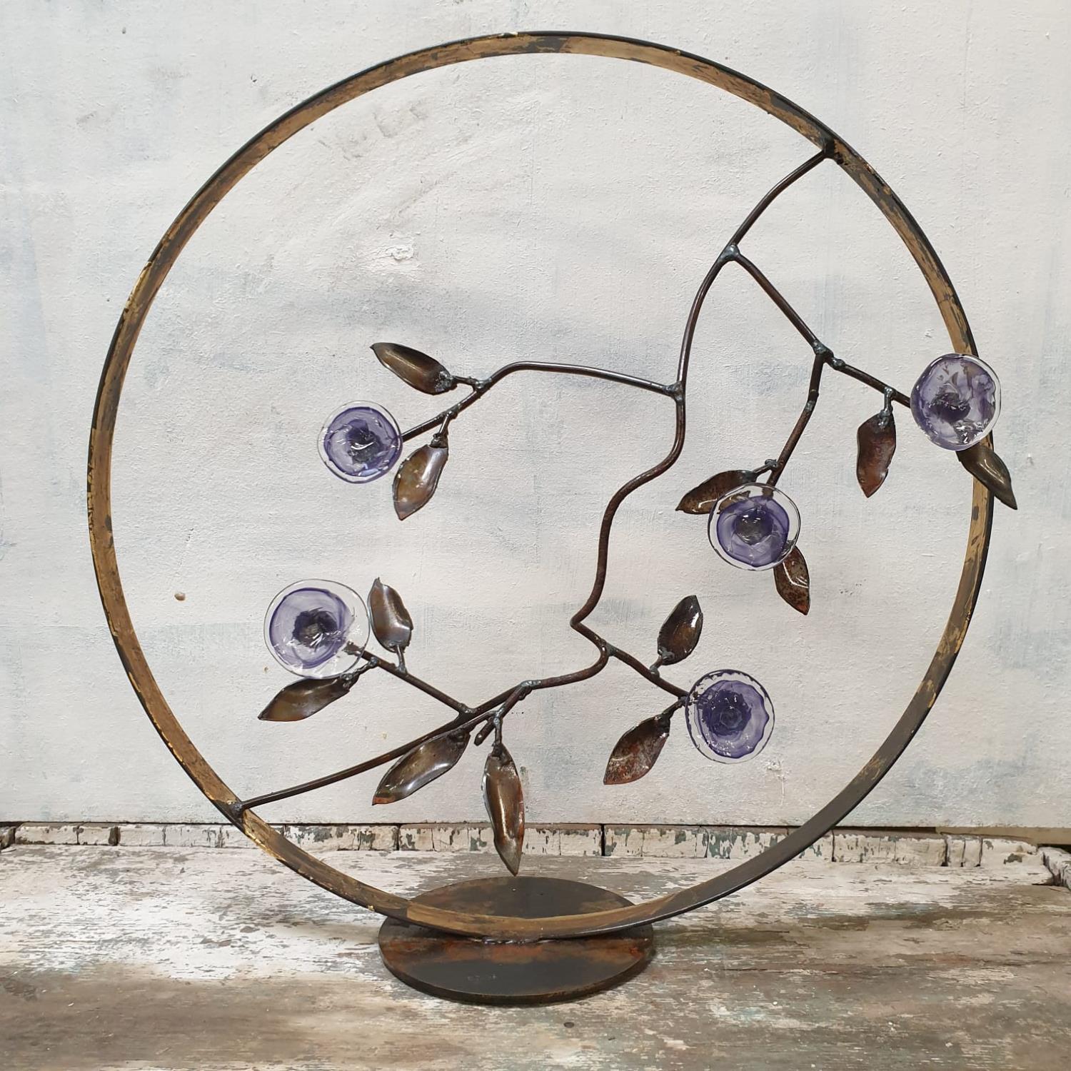 L'artiste a utilisé la technique Métal, verre soufflé pour créer cette sculpture grand format en Métal de style Figuratif sur le thème floral.