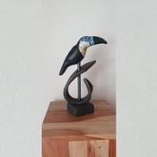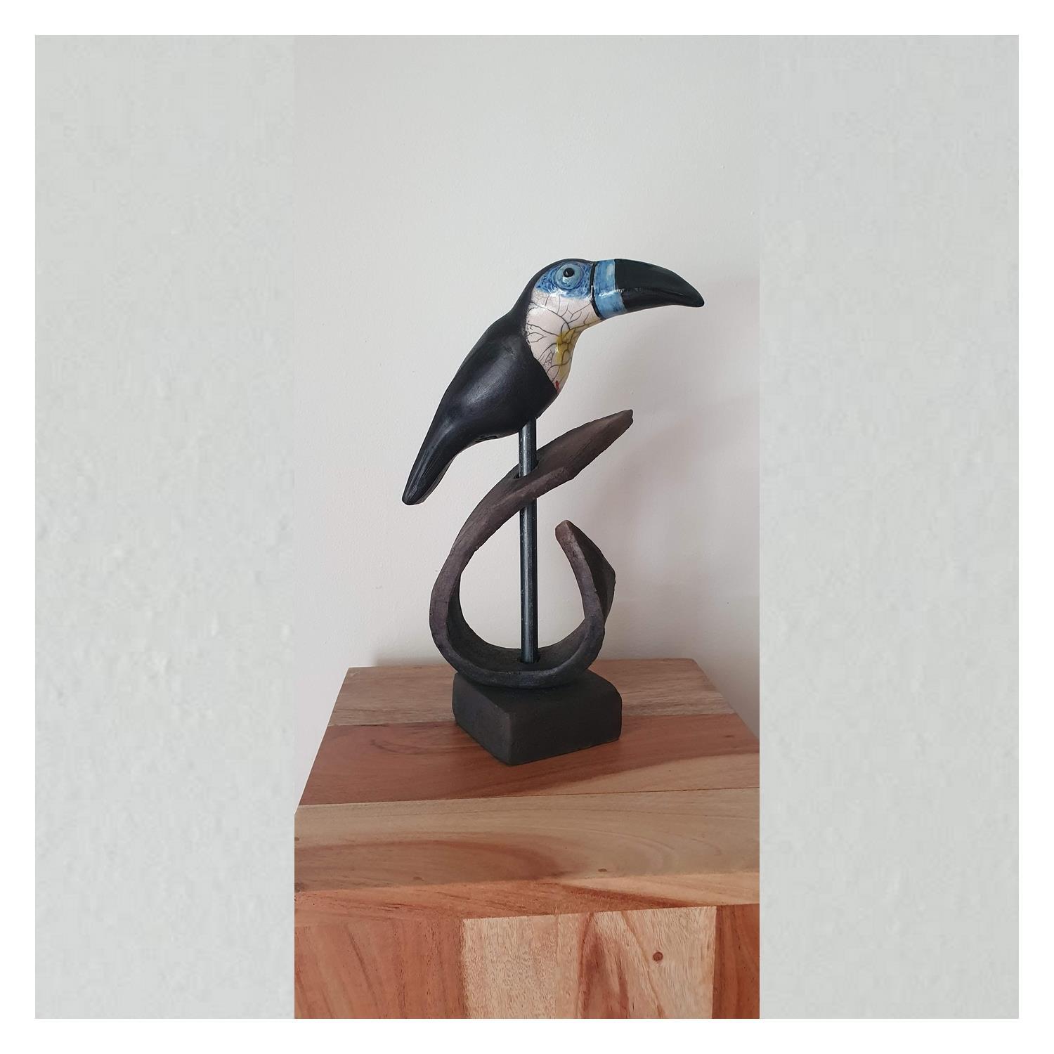 L'artiste a utilisé différentes techniques pour créer cette sculpture petit format au style singulier. Manchot du Cap 1 avec son oeuf