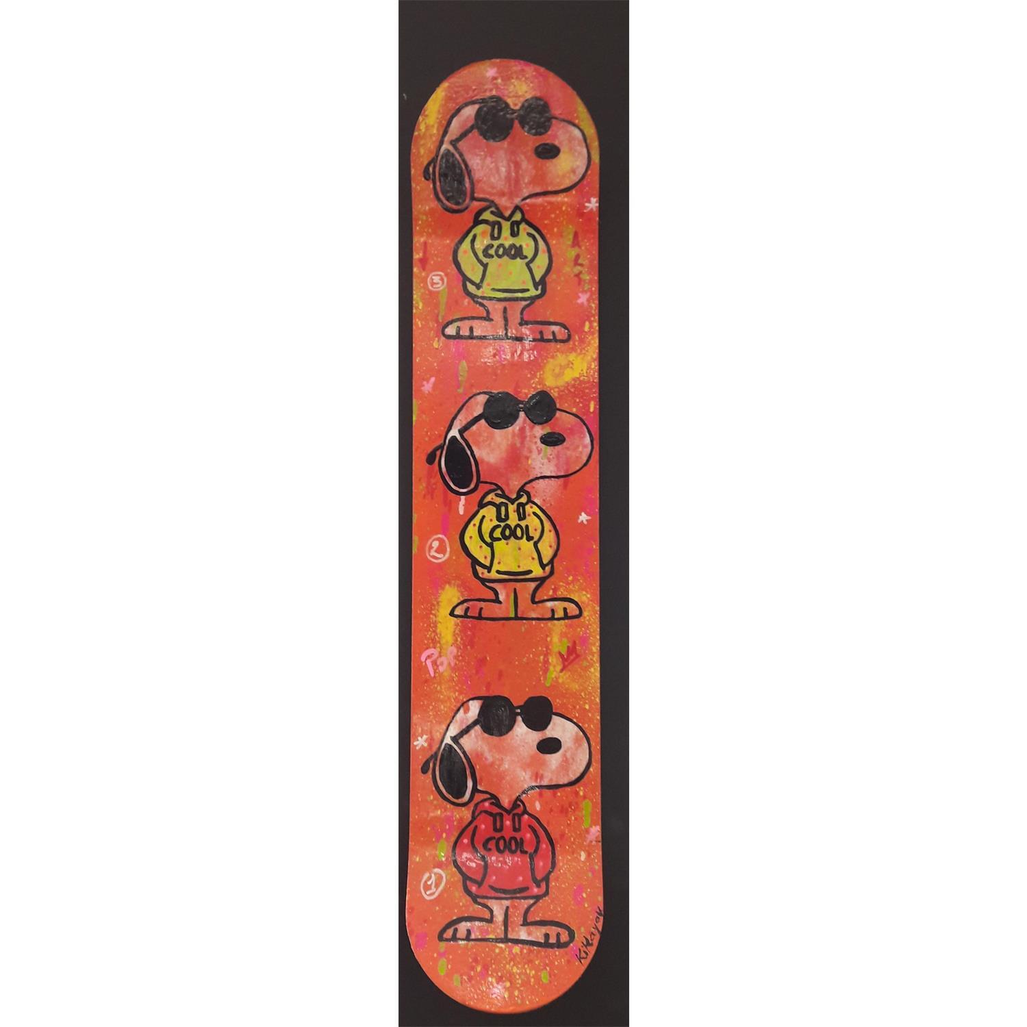 Cette oeuvre d'art contemporain unique et originale "Snoopy cool by 3 (Orange)" a été réalisée par l'artiste contemporain Kikayou. L'artiste a utilisé différentes techniques pour créer cette sculpture au style singulier.