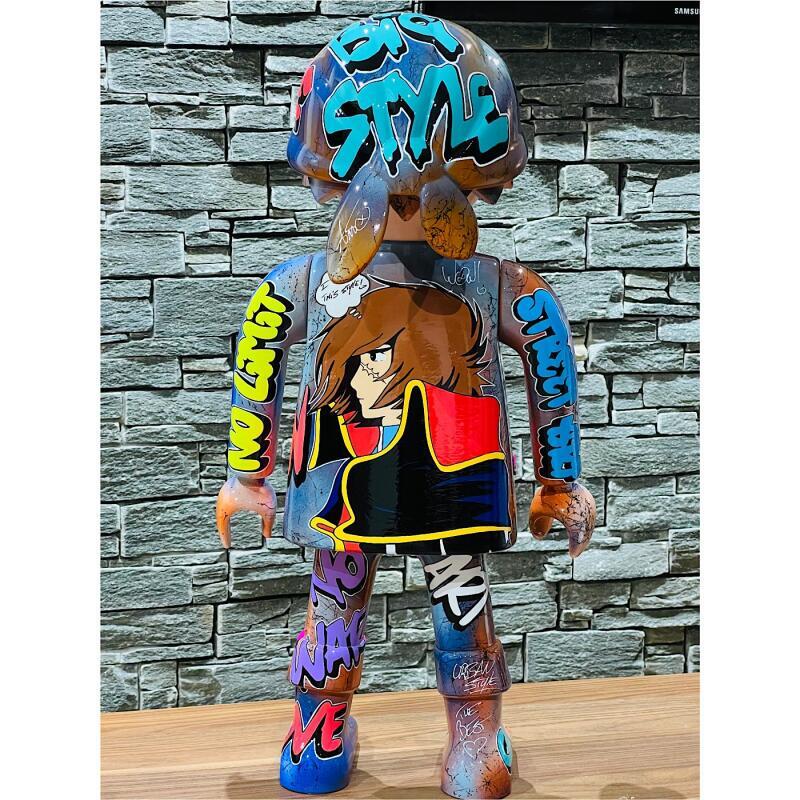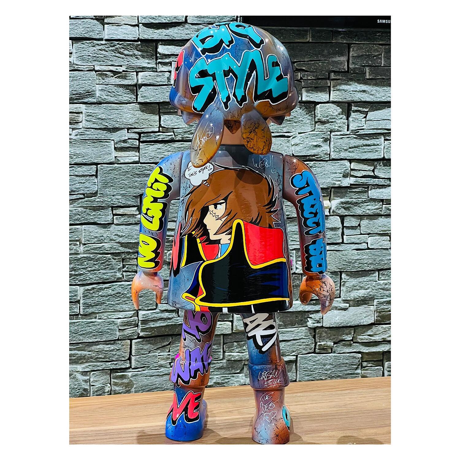 L'artiste a utilisé les techniques Posca, Graffiti pour créer cette sculpture grand format en autre de style pop-art sur le thème Icones Pop.