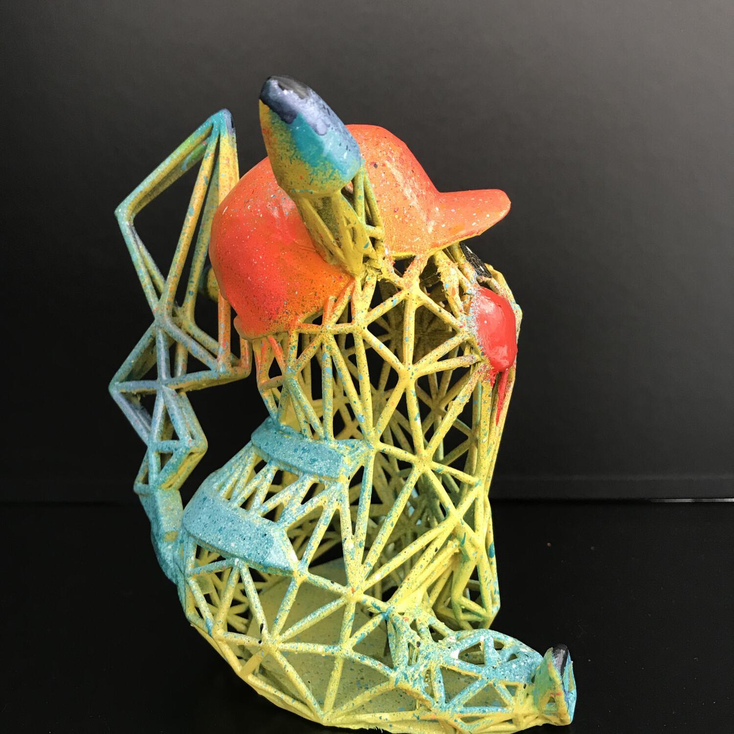 L'artiste a utilisé les techniques Graffiti, Résine pour créer cette sculpture petit format en Plastique de style Pop-art sur le thème Icones Pop.